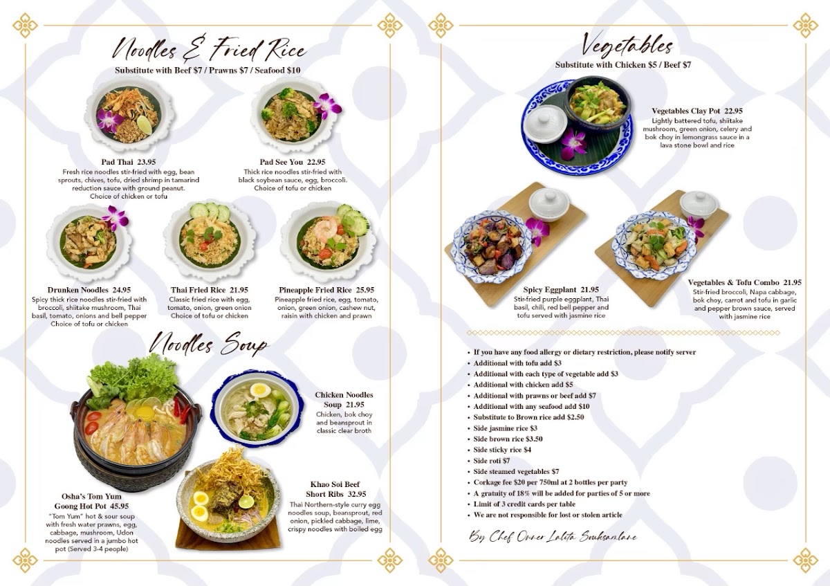 The reviews paint a vibrant picture of Osha Thai's offerings. A customer described it as "the absolute best Thai Restaurant in the Bay Area," praising its cozy decor and excellent service. Another visitor highlighted the expansive menu which serves all the beloved Thai favorites, ideal for sharing with friends or colleagues. While some have pointed out the need for customization in terms of spiciness, the overall consensus remains that the flavors are captivating and the presentation impeccable, providing a feast for both the eyes and palate.
